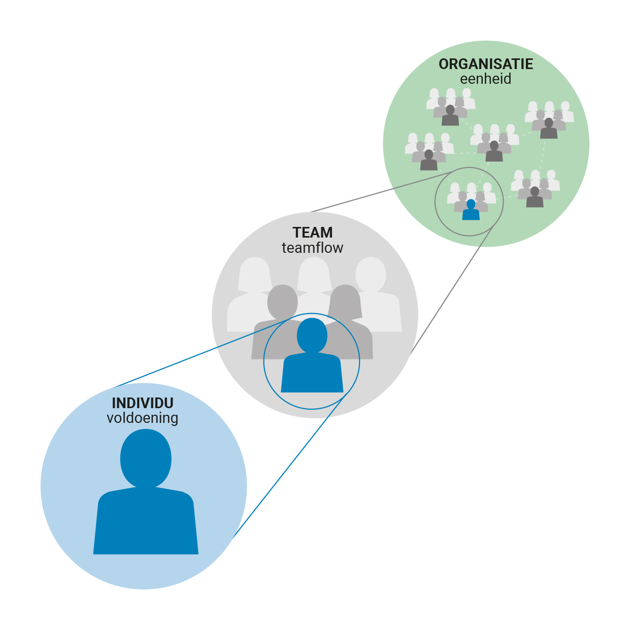 - er op teamniveau teamflow ontstaat waardoor de samenwerking veel meer oplevert dan som van de individuele teamspelers;