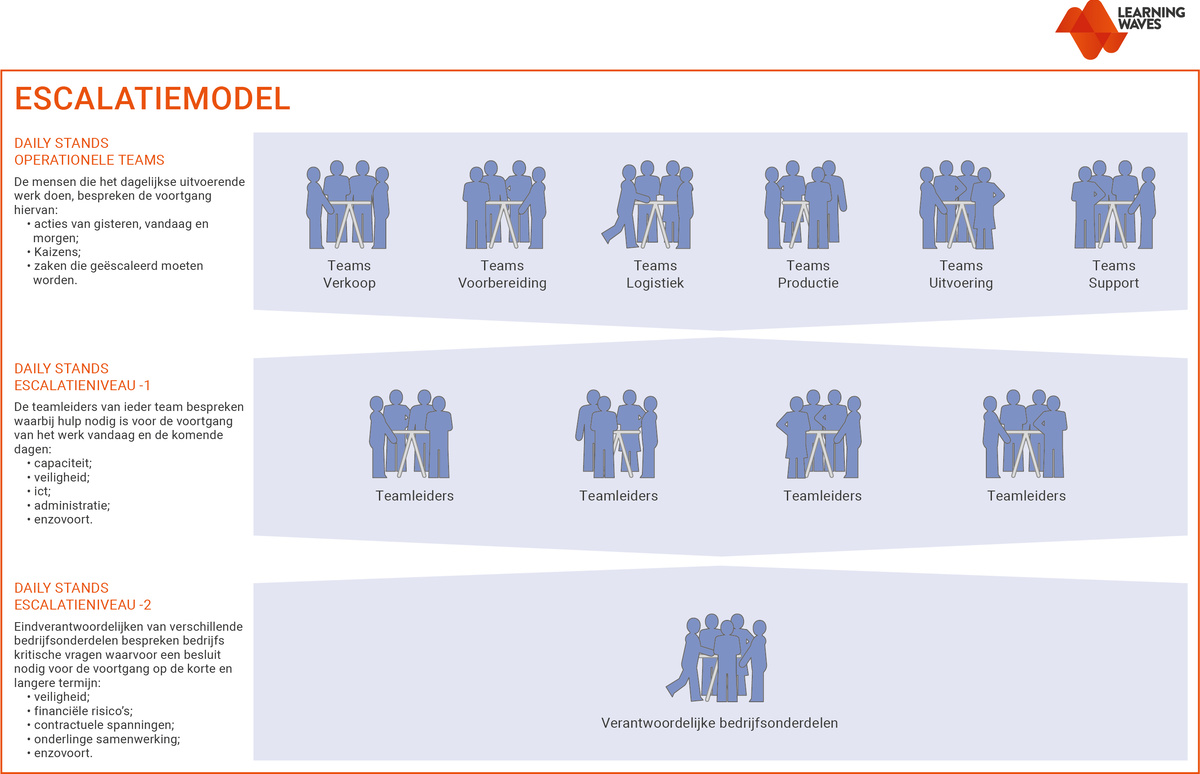 Aanvullend heeft Bolidt de Daily Stands volgens een escalatiemodel ingericht en gepland. Achtereenvolgens op dezelfde dag houden de operationele teams en de managers hun Daily Stand. Op die manier kunnen ze eventuele verstoringen waarvoor beslissingen van hoger hand nodig zijn, binnen enkele uren escaleren.