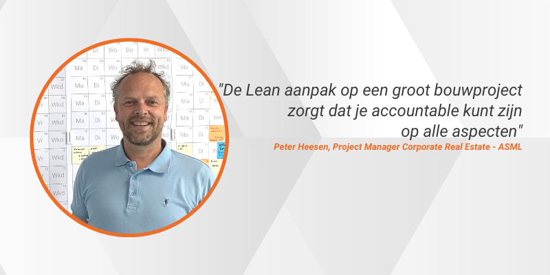 Lean in de productiewereld van ASML is natuurlijk geen onbekend begrip. Toch was dit project eigenlijk het eerste bouwproject dat Peter en zijn team met Lean Plannen hebben aangepakt. “We realiseerden ons dat de omvang, het belang en de afhankelijkheden van dit project, om een strakke en gestructureerde aanpak vroegen. En dat is, zeker terugkijkend op de afgelopen coronajaren, een bepalende factor geweest in de doorlooptijd van dit project. We hebben te maken gehad met lockdowns en leveringsproblemen, maar doordat we zicht hadden op afhankelijkheden en consequenties, konden we daarop anticiperen of, in het uiterste geval uitloop verantwoorden.”
